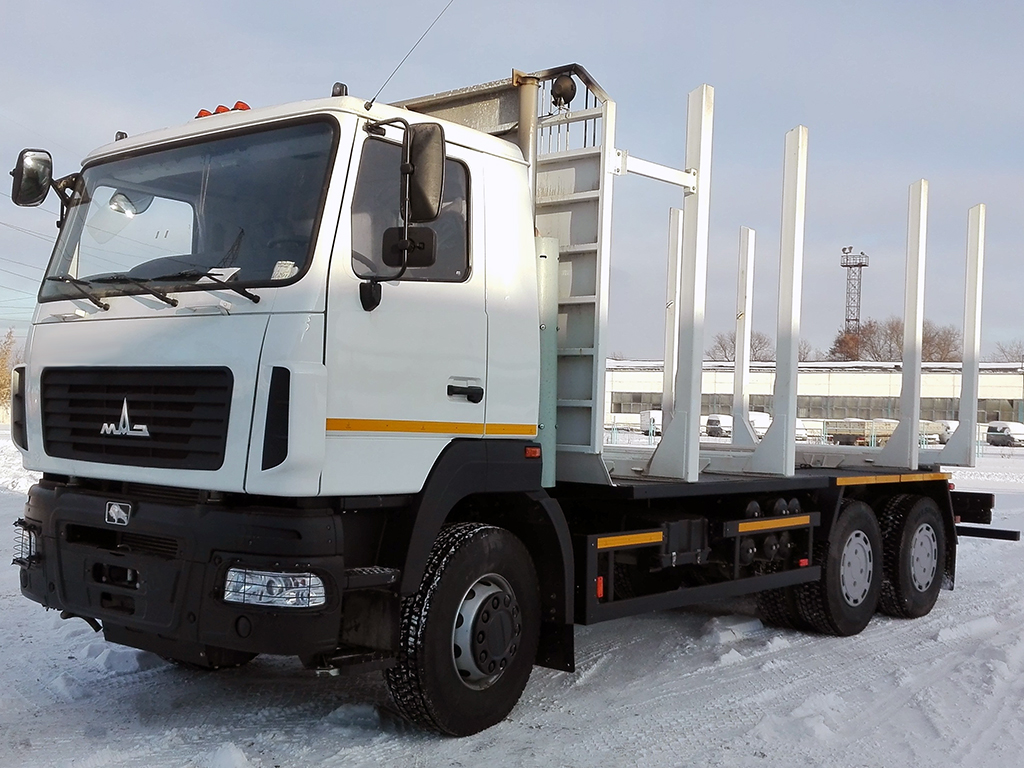 Полноприводный сортиментовоз МАЗ-6317F9-560-000 на односкатной ошиновке, предназначен для перевозки сортимента и лесоматериалов в тяжелых дорожных и суровых климатических условиях. В базовой комплектации оснащен еврофаркопом, а так же электро-пневмо выводами для работы с двух и трехосным прицепом. По заказу возможна установка как обычных так и Z-образных манипуляторов отечественного и импортного производства для крупного леса ОМТЛ (Россия), KESLA (Финляндия), Palfinger Epsilon (Австрия).